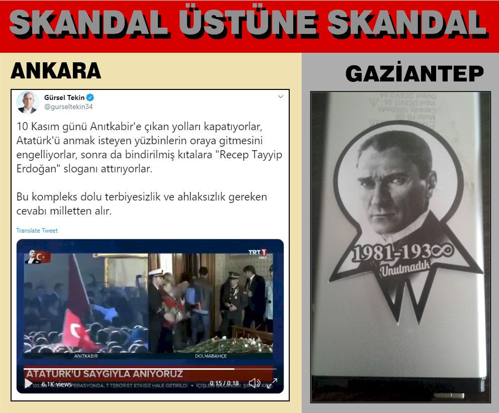 ANKARA - Bindirilmiş kıtaların (trollerin) Anıtkabir'de hazır bulunmaları ve 'recep tayyip erdoğan' sloganı atmalarıyla Ankara'daki skandal ortaya çıktı. 10 Kasım günü (bugün) Anıtkabir'e çıkan yolların kapatıldığı, yüzbinlerin Anıtkabir'e gitmesinin engellendiği anlaşıldı.